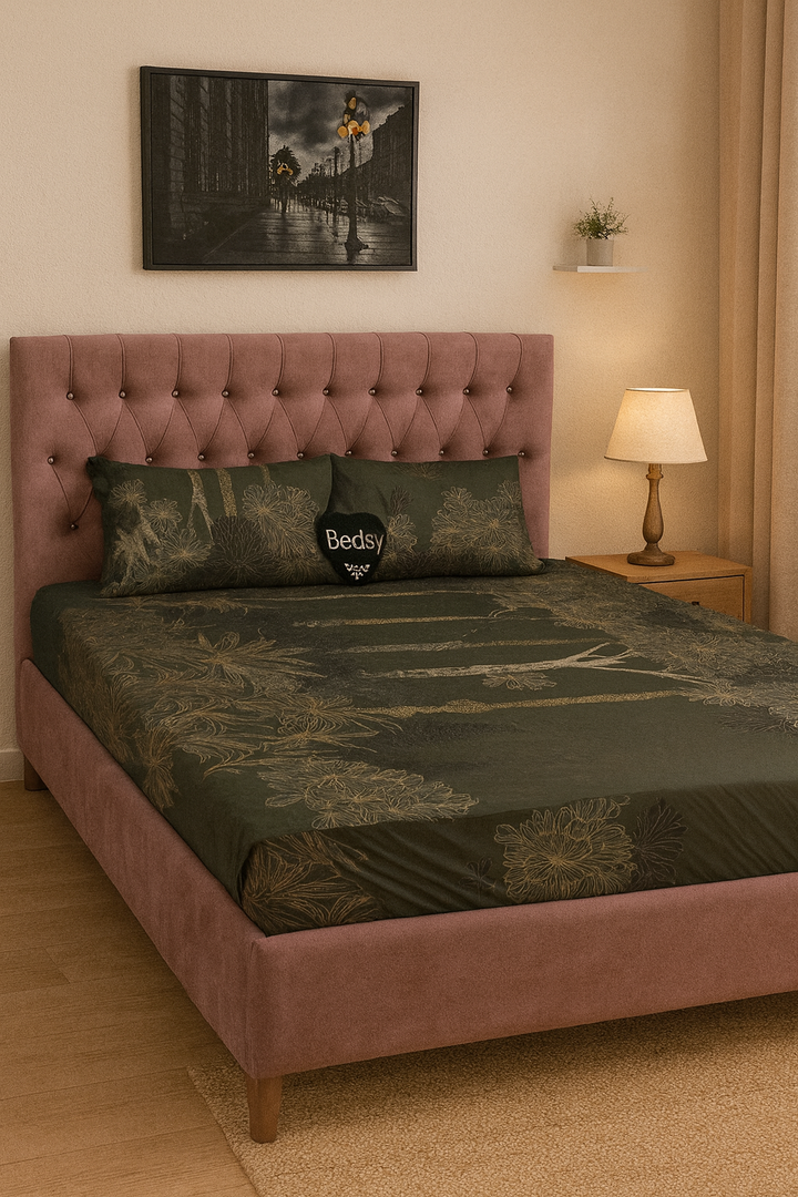 ✨ Bedsy’s Green Floral Fitted Sheet – designed for style, comfort, and everyday durability.