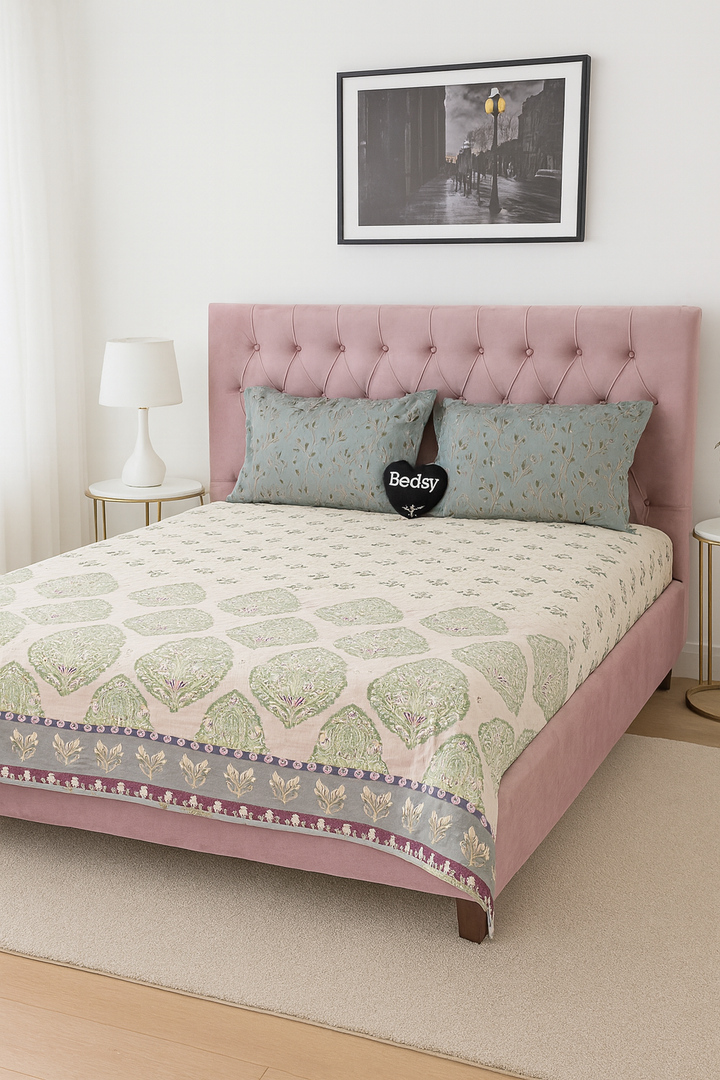 Add elegance and comfort to your master bedroom with our Premium King Size Bedspread Set. Designed with a unique mixed border pattern in soothing shades of green, beige, blue, and maroon, this bedspread combines traditional charm with a modern touch.